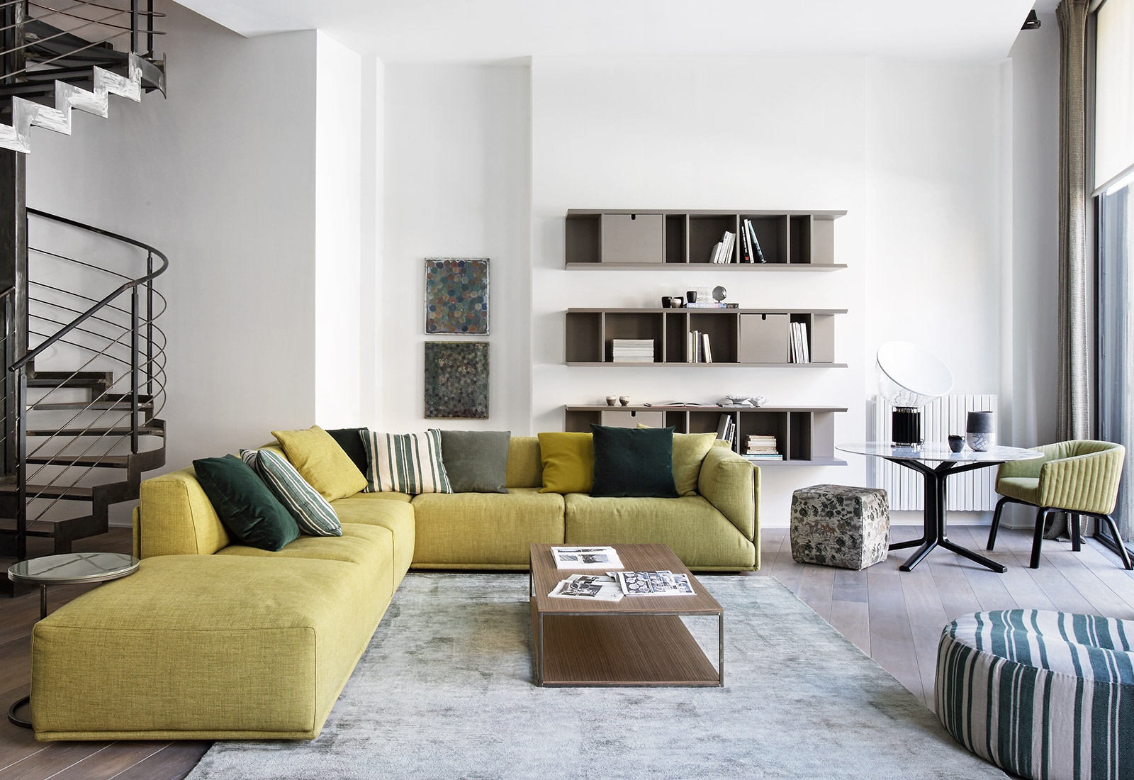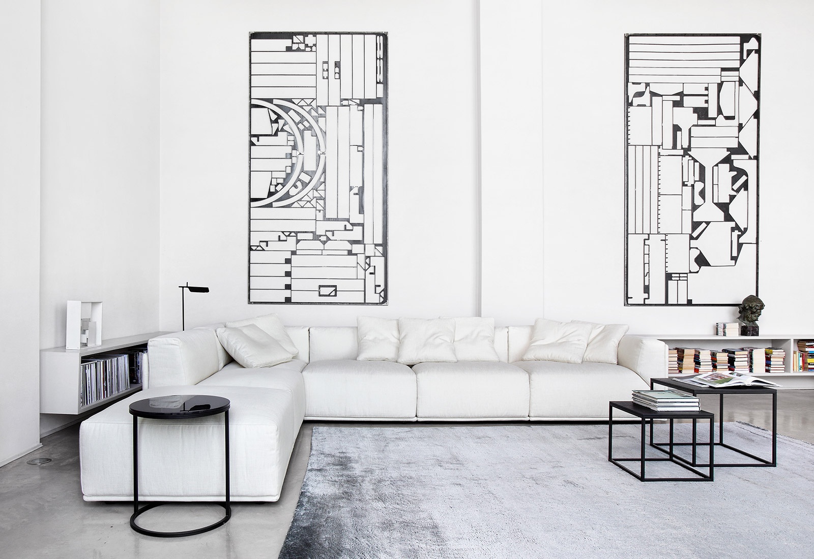 The Bacon modular sofa from Italian manufacturer Meridiani. The hidden framework of wood and metal. The upholstery is of leather or textile with removable covers for easy care sofa. Filler - polyurethane foam of different density and goose down. Colors from the company portfolio. The modern design.