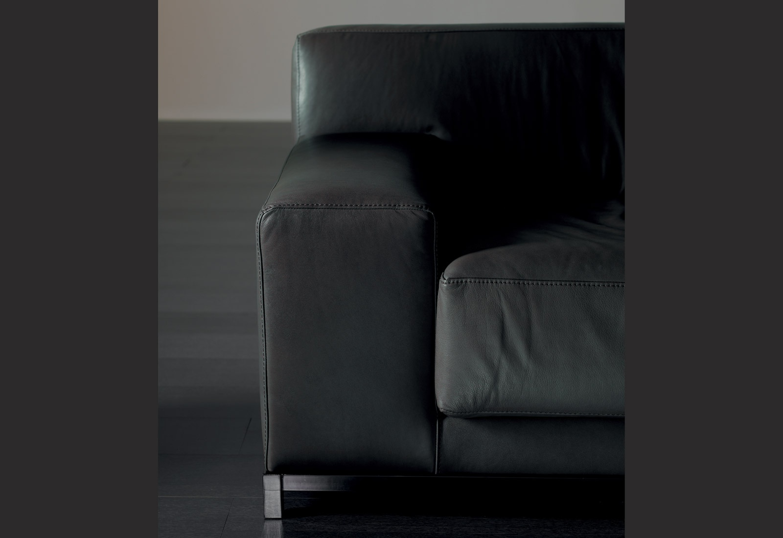 Freeman double sofa from Italian manufacturer Meridiani. The frame is made of wood and metal. Upholstery - leather or textiles from a range of campaigns. Filling - polyurethane foam of different density and goose down. The design of complementary decorative pillows. Color black or according to the manufacturer's catalogue.
