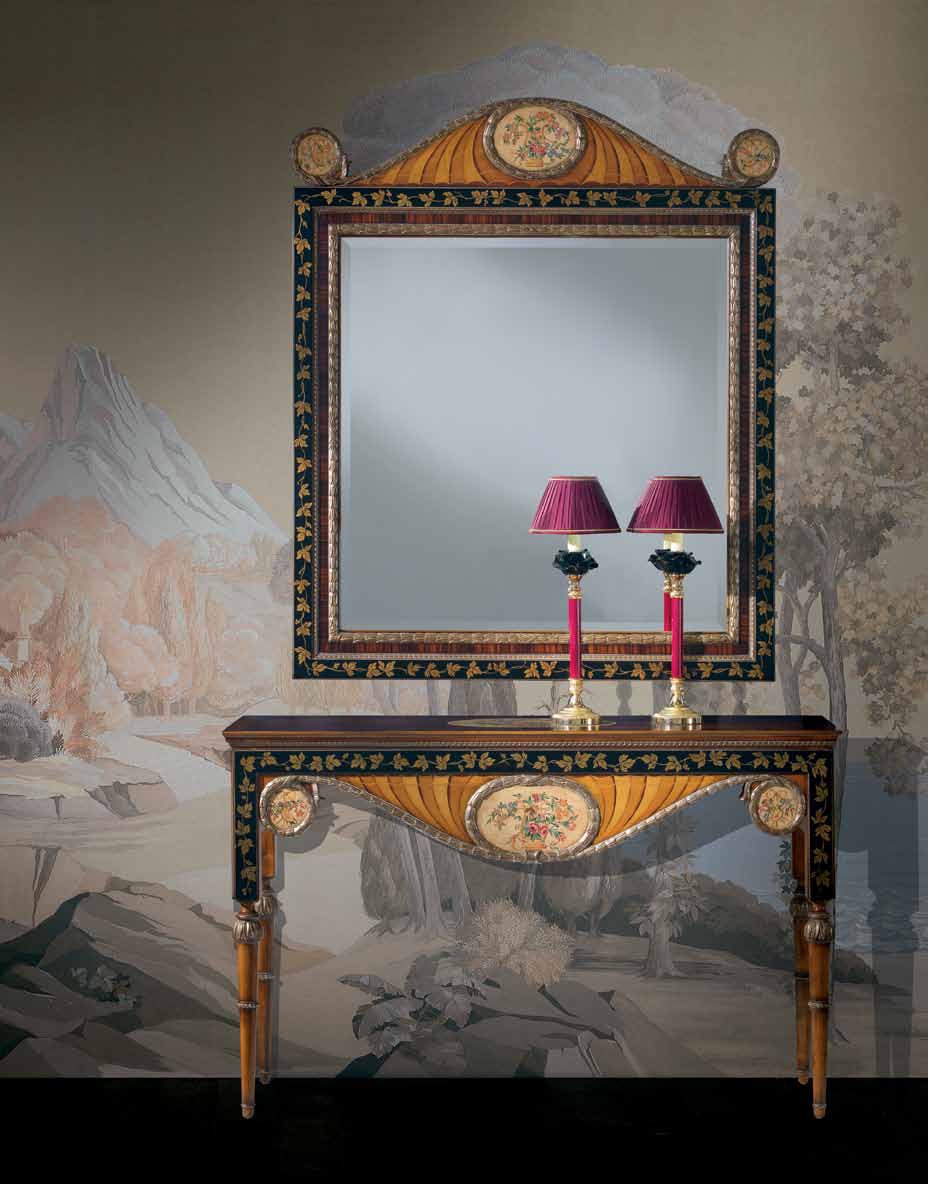 The Console Art. 555 Italian manufacturer Zanaboni. Presents a model of a rectangular console on high legs. Has painted elements, floral ornaments. The perfect solution to complement a classical interior.