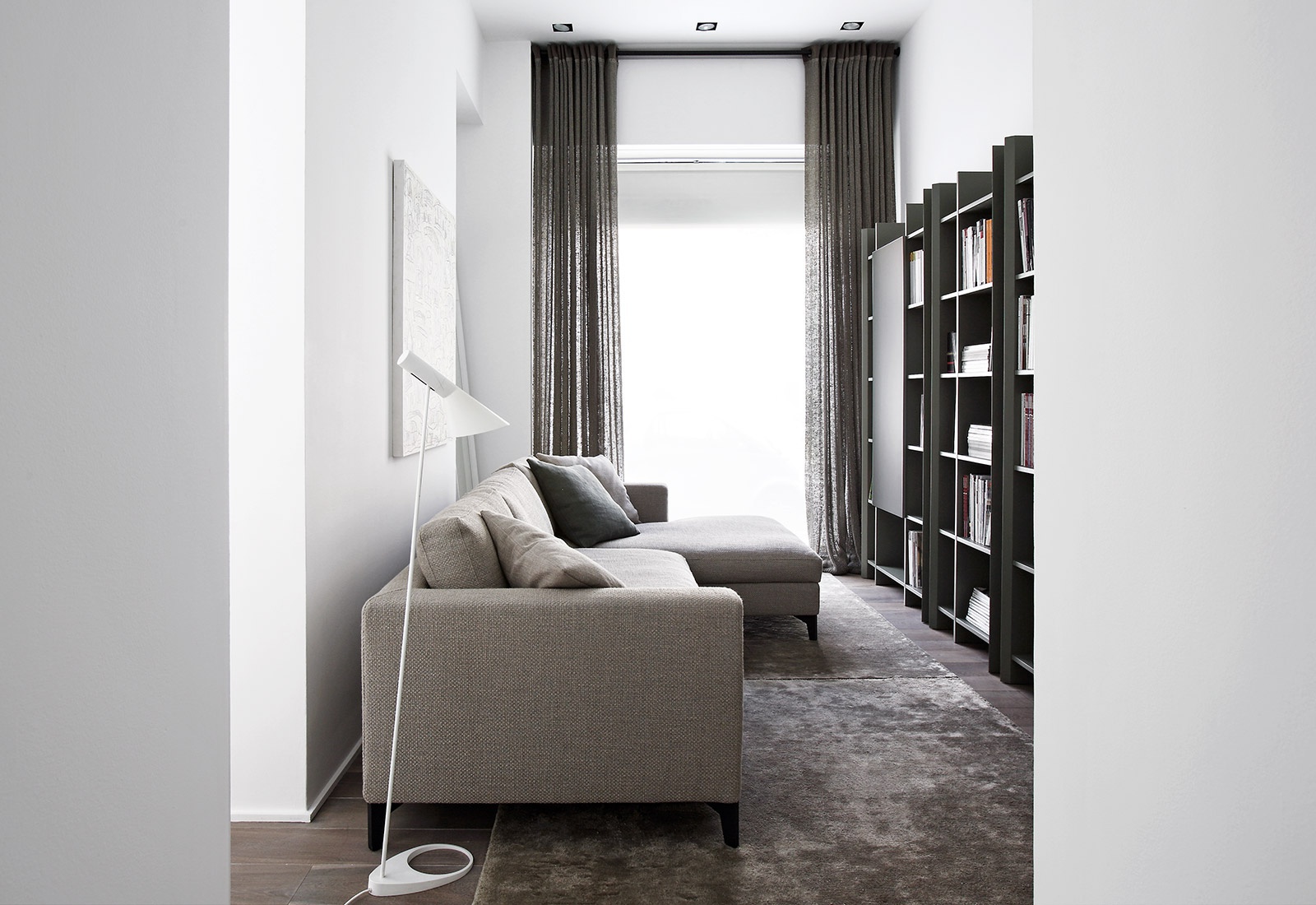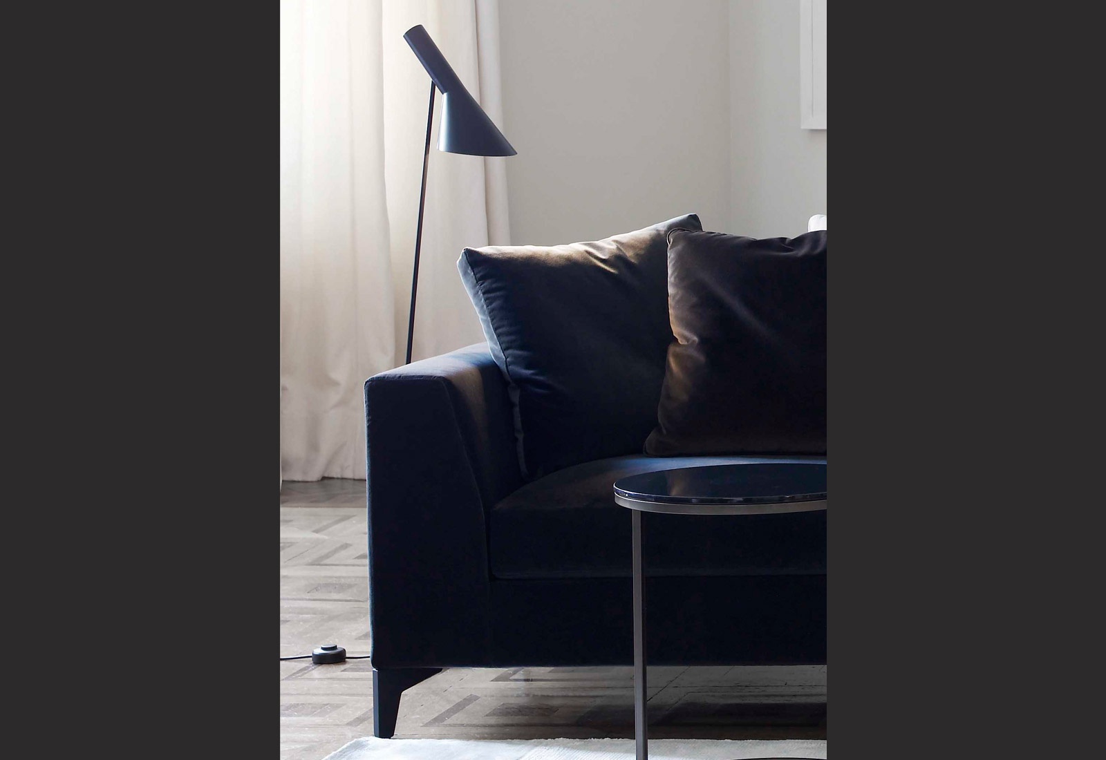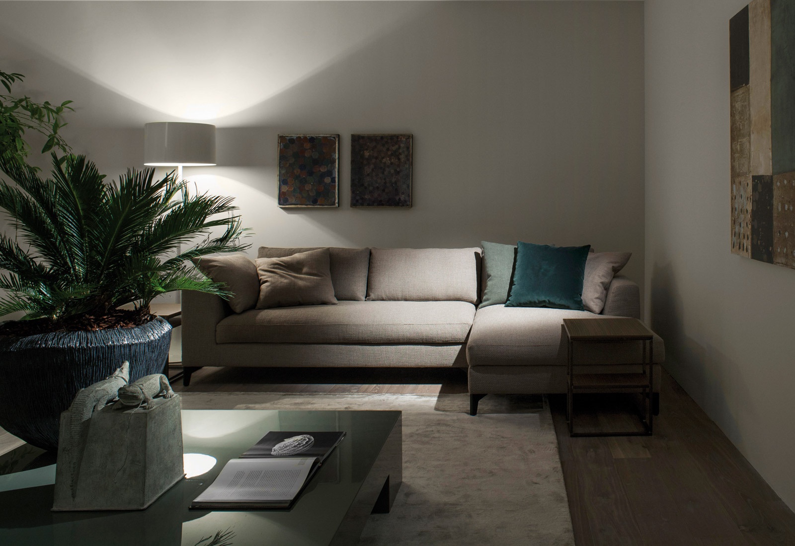 The Lewis Up modular sofa from Italian manufacturer Meridiani. The frame and legs are made of metal and wood. Upholstery textile or leather. The filler is polyurethane foam and goose down. Colours in stock. Design models complement the decorative pillows. The contemporary style will create a cozy atmosphere in any interior.
