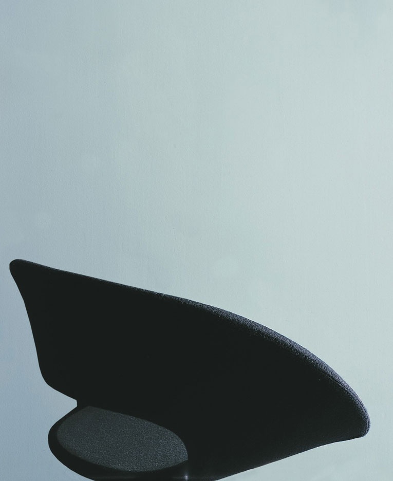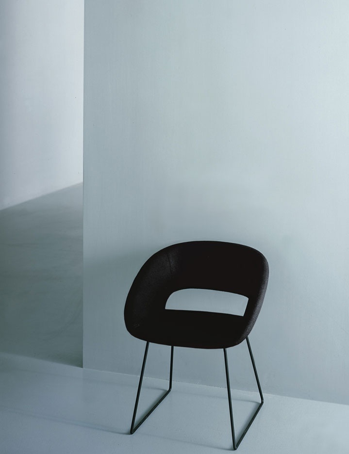 The Conch chair by Italian manufacturer Porro. Chair with armrests on a rotating metal base. Removable upholstery made of fabric from the collection company. The model can be used in home and office interior.