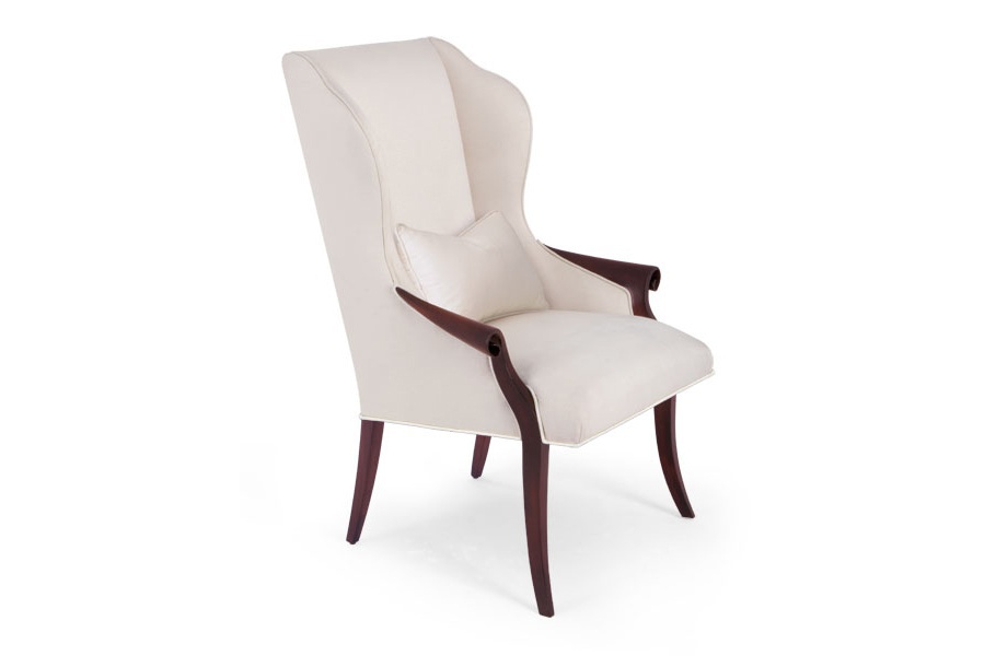 Chair Mimosa from producer Christopher Guy (Harrison & Gil). The frame is natural wood, hand carved. The seat and backrest soft upholstered in leather or fabric. The model is made in art Deco style, combines tradition and design. Colours in stock.