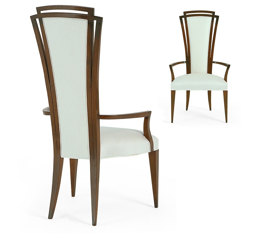 Chair Savannah from producer Christopher Guy (Harrison & Gil). The model with high backrest made of natural wood. The seat and back are upholstered with fabric. The model is made in art Deco style, combines tradition and design. Colours in stock.