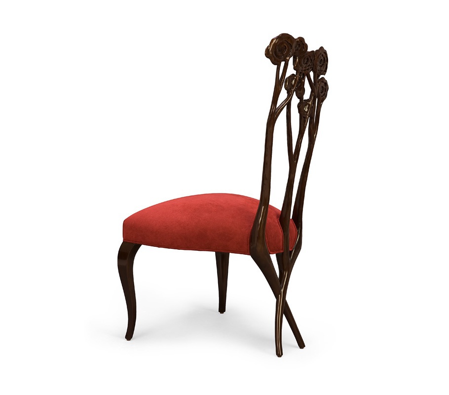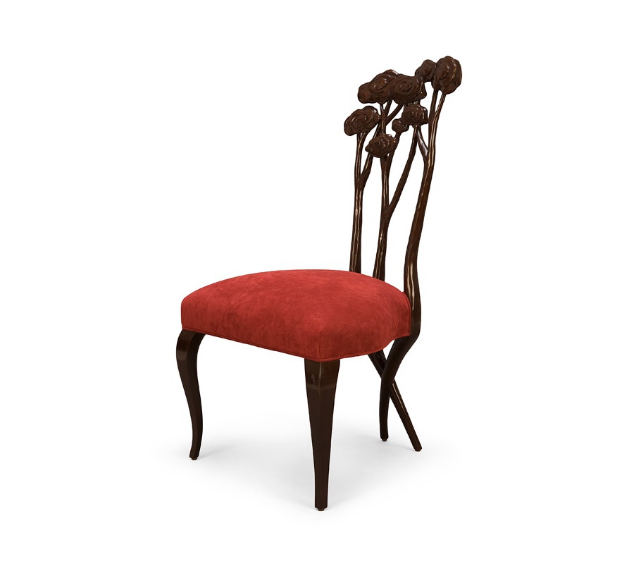 Chair Le Jardin from producer Christopher Guy (Harrison & Gil). The frame is natural wood. Features attaches to the back is decorated with handmade carving. Upholstery - textiles. The model is made in art Deco style. Colours in stock.