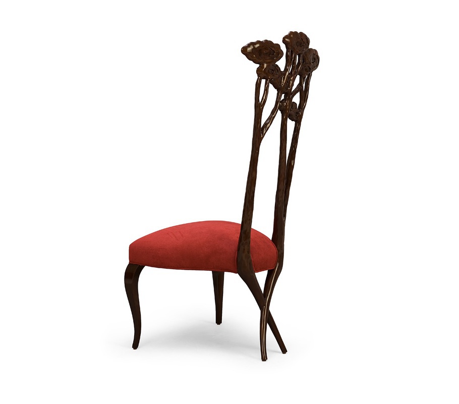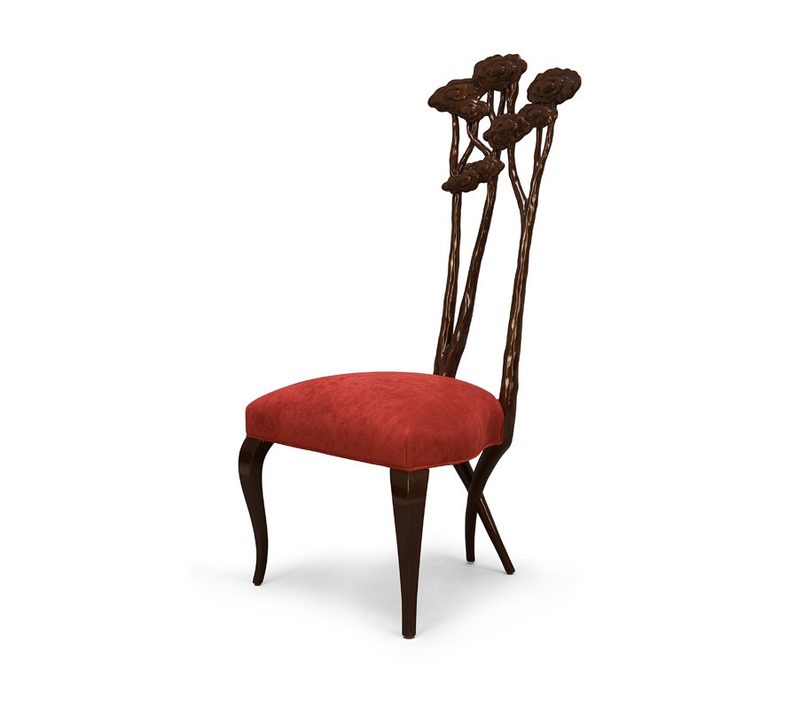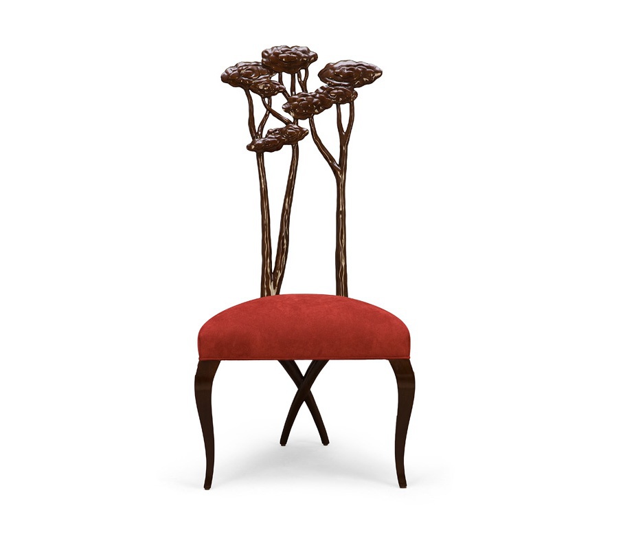 Chair Le Jardin from producer Christopher Guy (Harrison & Gil). The frame is natural wood. Features attaches to the back is decorated with handmade carving. The surface is lacquered black. The model is made in art Deco style, combines tradition and design. Colours in stock.