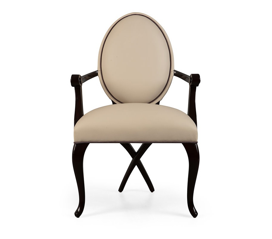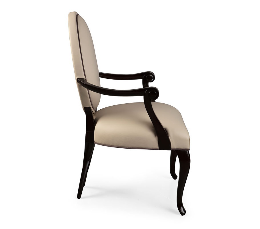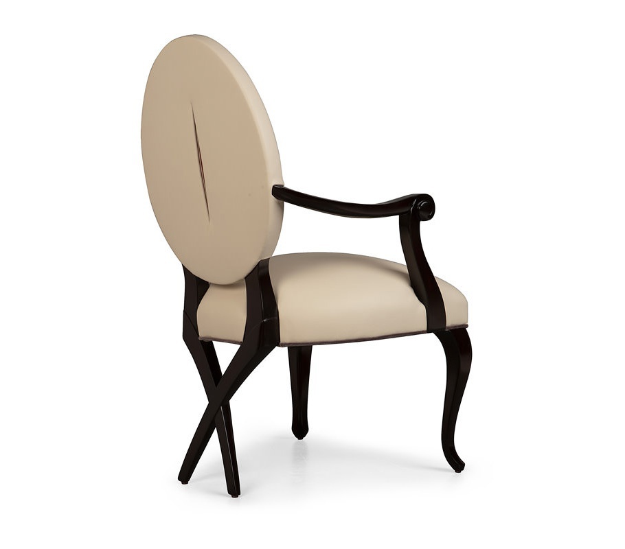 Chair Ovale from producer Christopher Guy (Harrison & Gil). The frame is natural wood, hand carved. The seat and back are upholstered with fabric. The model is made in art Deco style. Colours in stock.