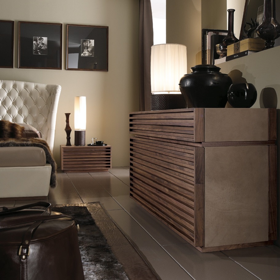 Manhattan bedside table from the Italian manufacturer Ulivi. Model on a frame of fir, shponirovannye Hickory. Model with drawers made of walnut. Trim top and side portions of leather. The color scheme of this product in the color of natural wood. Dresser is manufactured in contemporary style.