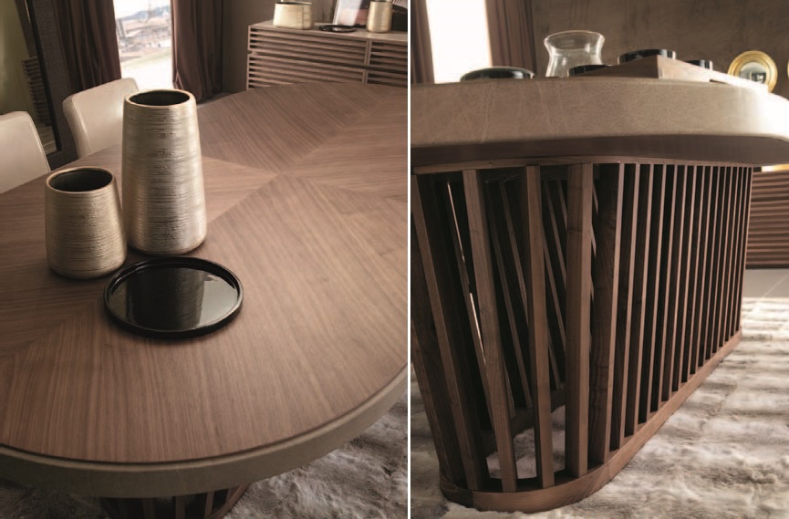 The Menphis Luxury dining table from Italian manufacturer Ulivi. The frame is made of fir wood with a finish American walnut with leather inserts. Model with oval top on a massive basis. Are stylish in design. Colors of this model is presented in the color of natural wood, you can choose the catalog of the manufacturer.