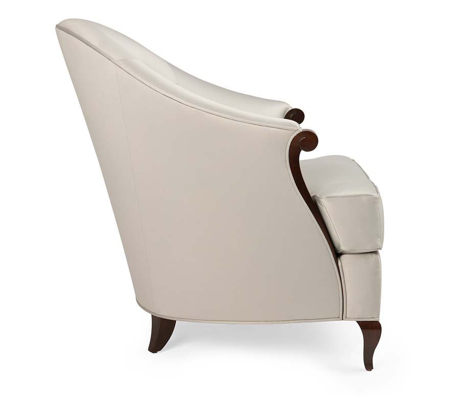 Morzine seat from producer Christopher Guy (Harrison & Gil). The frame is natural wood, hand carved. The seat and backrest soft upholstered in leather or fabric. The model is made in art Deco style, combines tradition and design. Colours in stock.