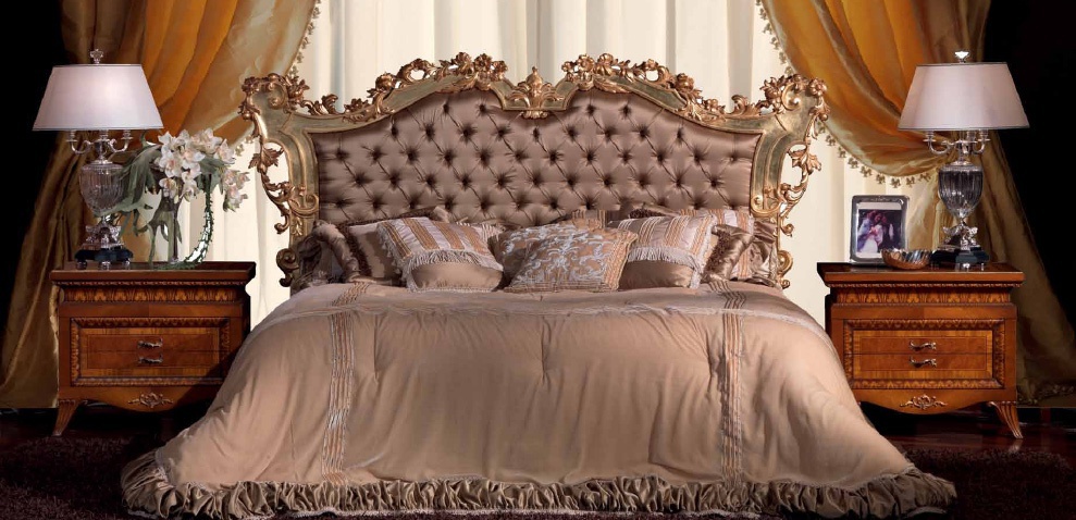 Set for bedroom CLoe Italian manufacturer Zanaboni. The presented model is a double bed, bedside cabinets and dresser. Bed with high headboard, dresser with drawers. Colors of beige, silver and brown tones. A style classic.
