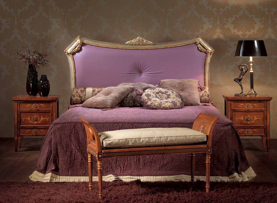Set for bedroom Ermes Italian manufacturer Zanaboni. The presented model of a double bed, bedside tables and benches. The original bed with high upholstered headboard. Bedside tables with drawers. The semi-circular bench with armrests, seat upholstered, detachable. The perfect solution for bedroom in classical style.