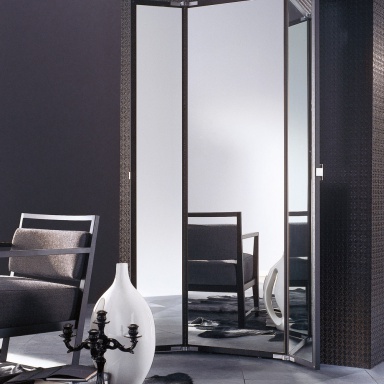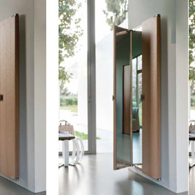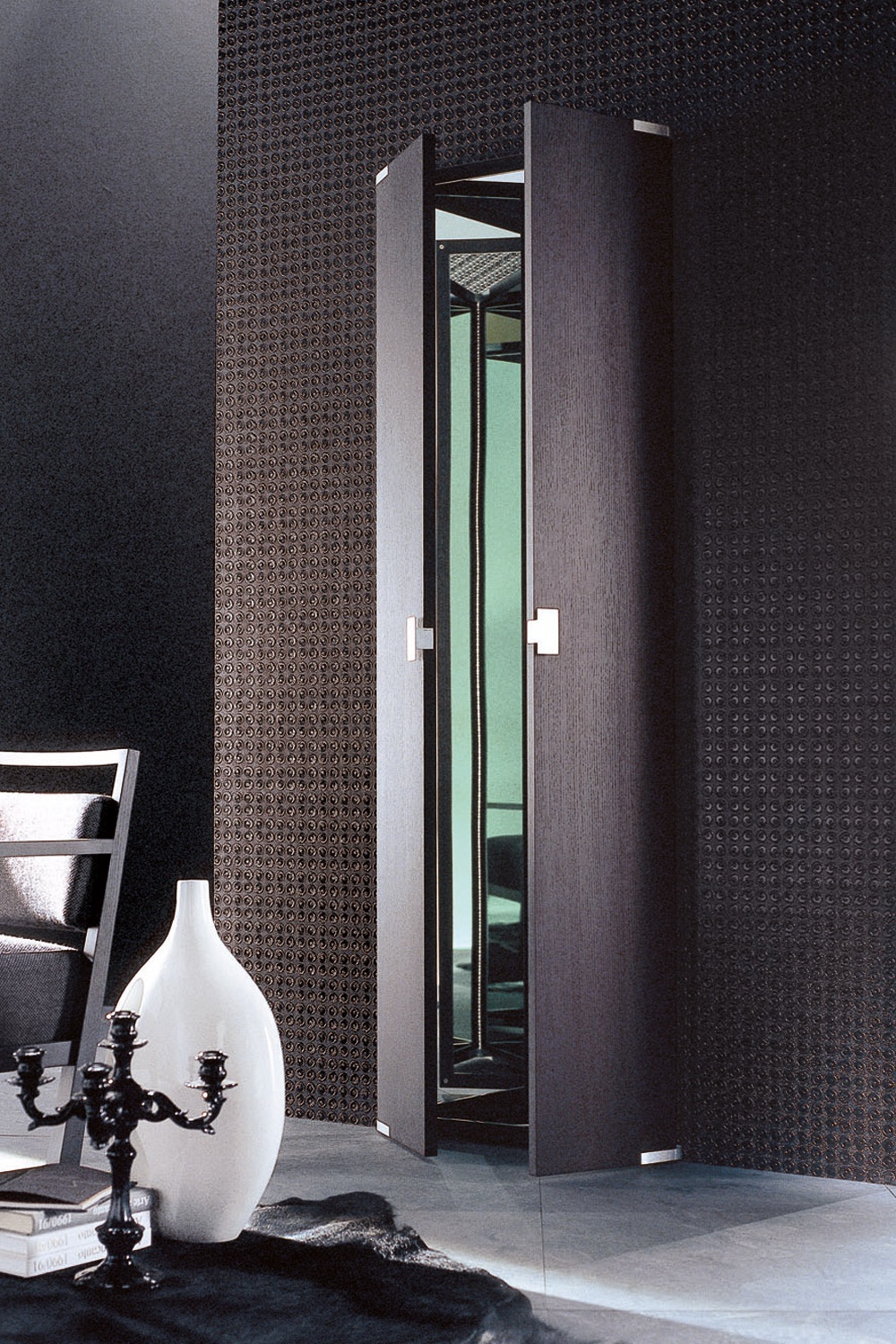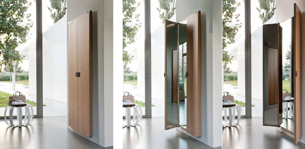 Bellavista Alto mirror from the Italian manufacturer Porada. Wall mirror-trellis, hidden behind double doors made of oak. Finishes of natural oak, stained wenge, walnut or in the painting is not closing the pores of the wood.