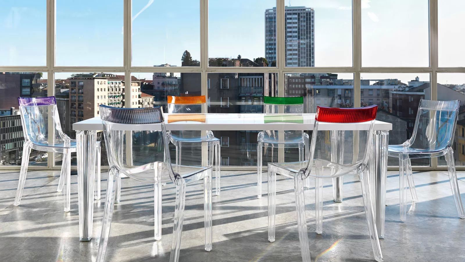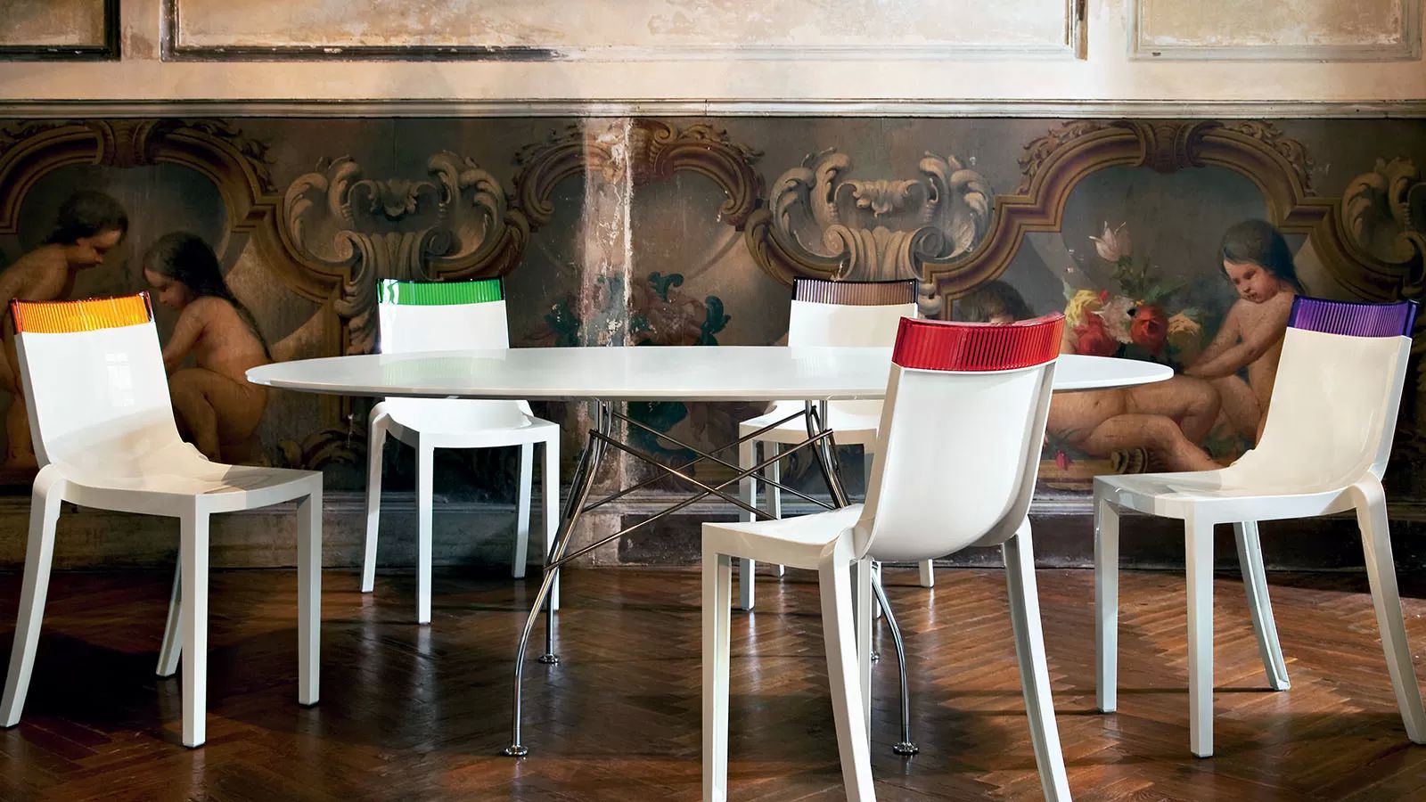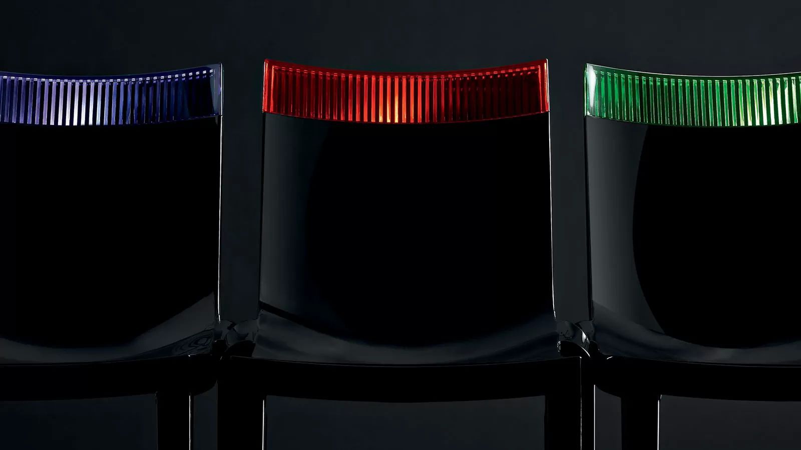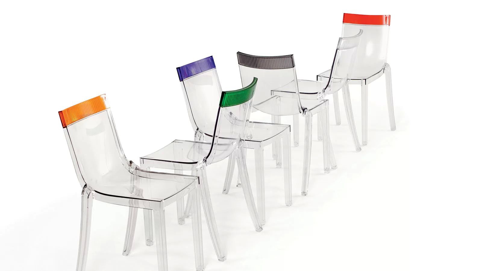 The Hi Cut chair from the Italian manufacturer Kartell. Materials - solid color transparent or black polycarbonate. The perfect chair combines elegance and comfort. The model is made in art Deco style, combines tradition and design.