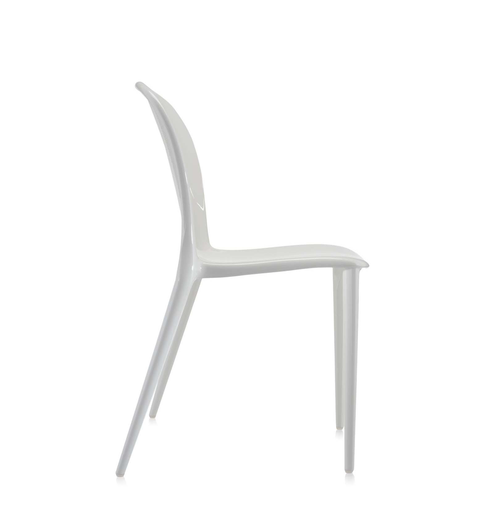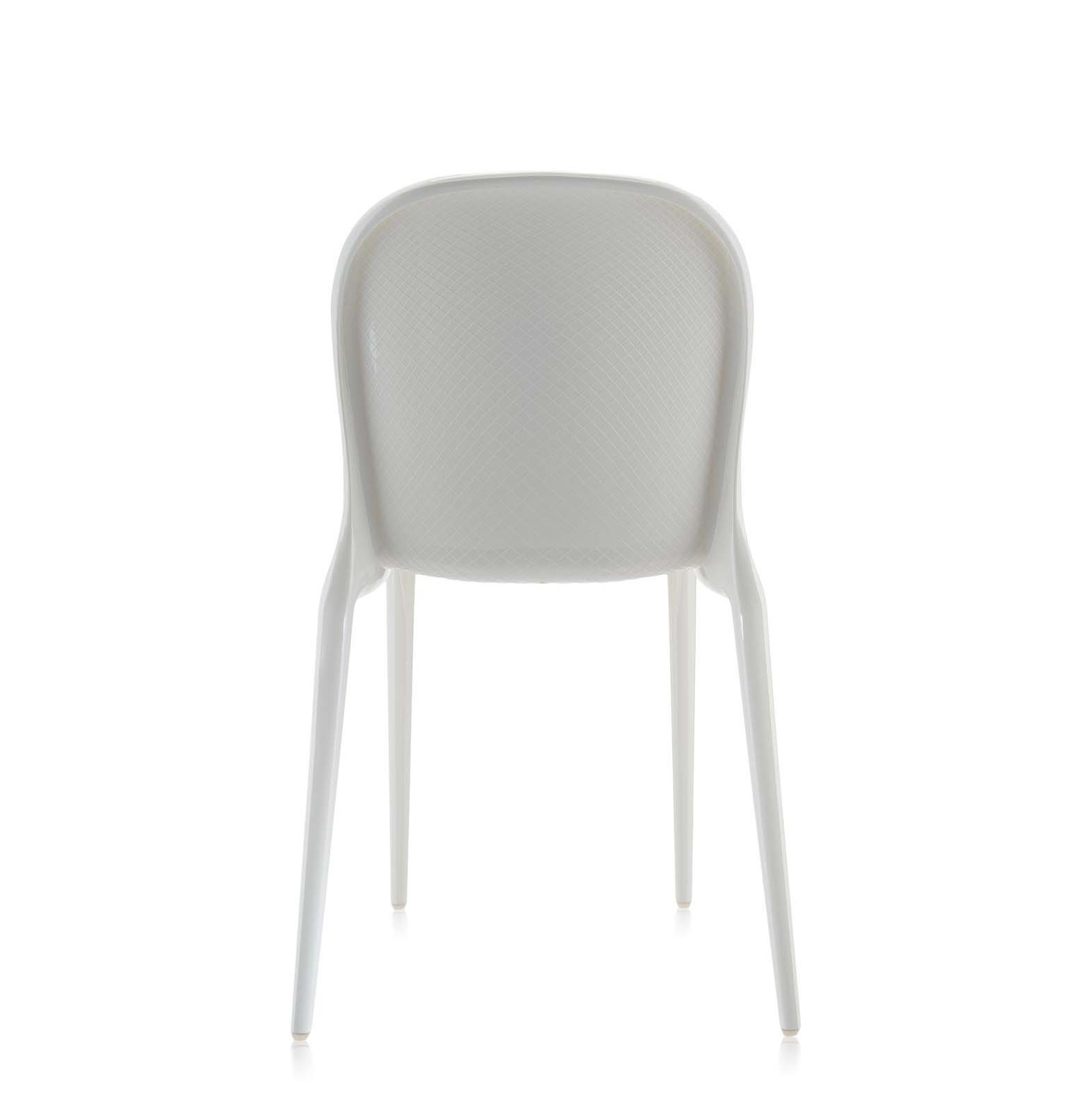 The Thalya chair from the Italian manufacturer Kartell. This is a chair in transparent polycarbonate, curved, elegant, soft shapes which resemble the outlines of the female figure. Manufactured using a special technology of gas injection, the rounded corners and the hollow core of the Thalya chair hide a special treatment enabling to reach a net figure, smoothly spreading on the surfaces of the seat and backrest. Thin line, giving swiftness and creating the perfect elegant reflections on the surface of the product, increases its elusive charm. Subtle color scheme allows you to use the product in the chic interior.
