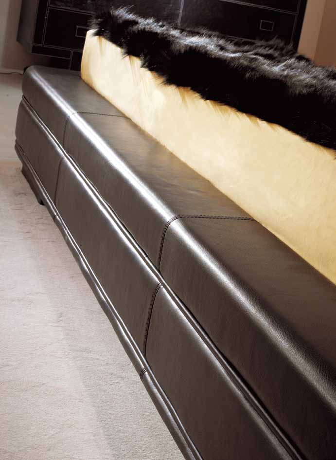 Set for bedroom Anthology from the Italian manufacturer Ulivi. This set includes a double bed on low legs, bedside tables and chest of drawers. Material frame of beech. Upholstery and trim is made of black leather. Set in a modern style and black color is the perfect choice for stylish bedrooms.