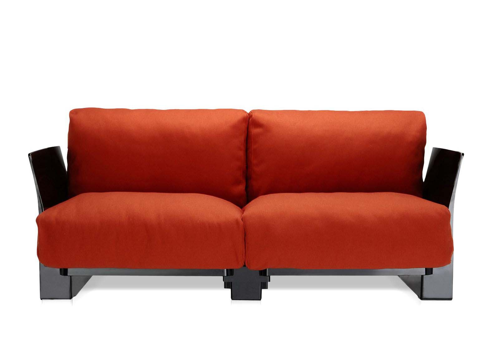 Pop two seater sofa from Italian manufacturer Kartell. Frame - black polycarbonate. The seat and back are upholstered with fabric. The model will perfectly complement the modern interior living room. Colours in stock.