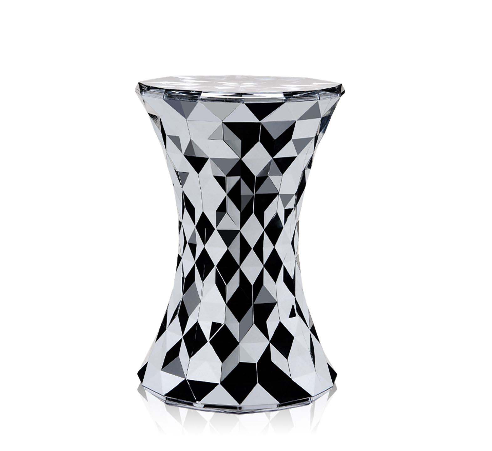 The Stone stool from the Italian manufacturer Kartell. Low stool is a very simple form, representing a real jewel. The shape of the product is simple and symmetrical, like an hourglass, the surface consisting of a plurality of reflective faces that are unique and unusual, creates a special luminous effect of the paint, giving it a resemblance to the diamond. Unique quality products has led to the proposed color scheme, echoing the jewel tones.