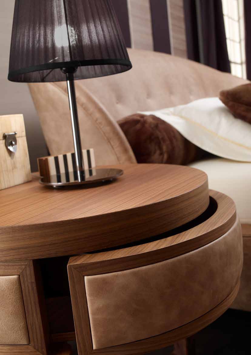 Bedside table bedside World Luxury from the Italian manufacturer Ulivi. The frame is made of wood. Top and legs are made from wood. Front panels are covered with skin. Gorgeous designer model for any interior, in particular for classical bedrooms. Colors in shades of natural wood, brown, possible catalogue of the manufacturer.
