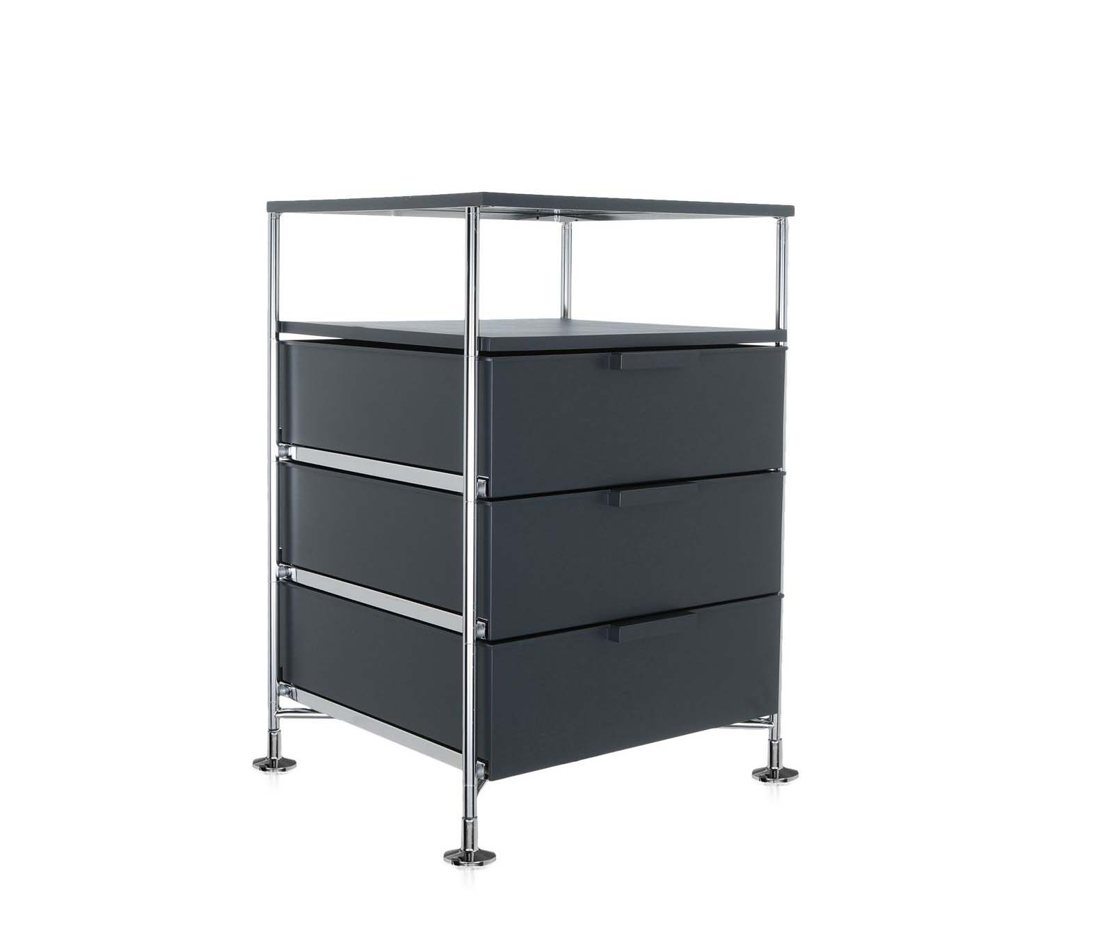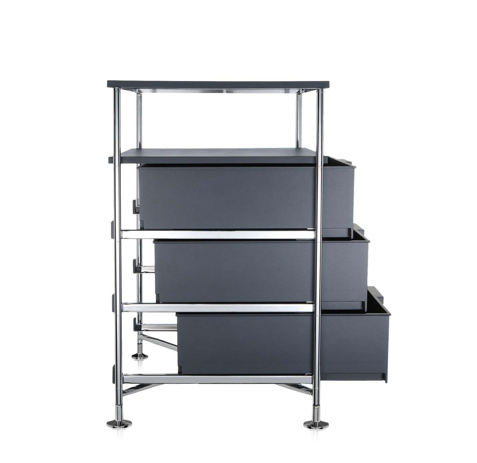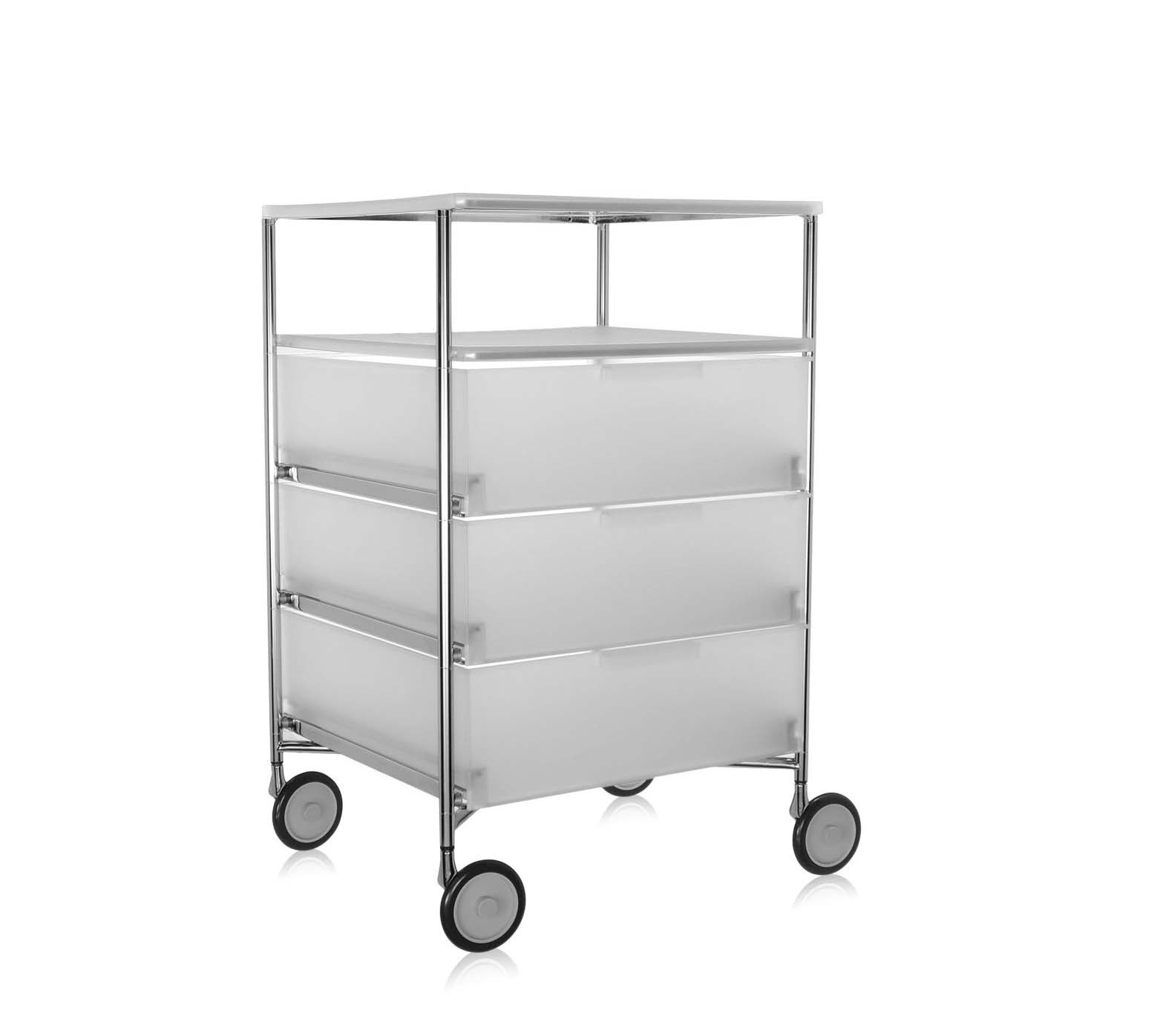 The Mobil chest of drawers from Italian manufacturer Kartell. Frame - chrome-plated steel. Containers and shelves are transparent or coloured shock-resistant polymethylmethacrylate (PMMA). The model is made in a modern style, combines tradition and design. Colours in stock.