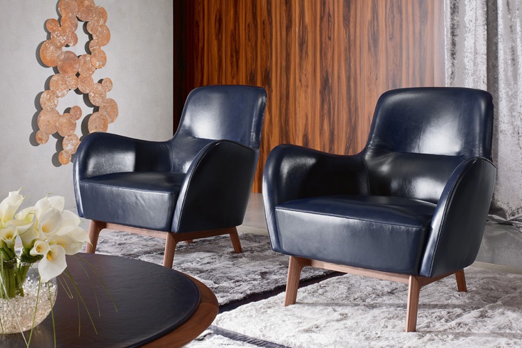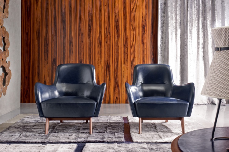 The Caroline chair from the Italian manufacturer Ulivi. The frame and legs are made of natural wood. Seat and back upholstered. The model with armrests, smoothly flowing into the back. Upholstery leather from the range of the manufacturer. Product design style with a hint of modernity. Colors of the proposed model in dark blue colors, you can choose from a catalog.