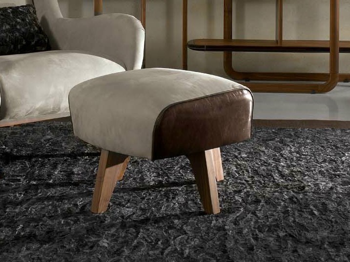 Brigitte stool from the Italian manufacturer Ulivi. The frame and legs are made of beech wood. Model soft on the legs. Upholstered in suede and leather from the range of the manufacturer. The product in modern style perfectly complement the armchair from the same collection. Colors of the proposed model in shades of brown and ivory, you can choose from a catalog.