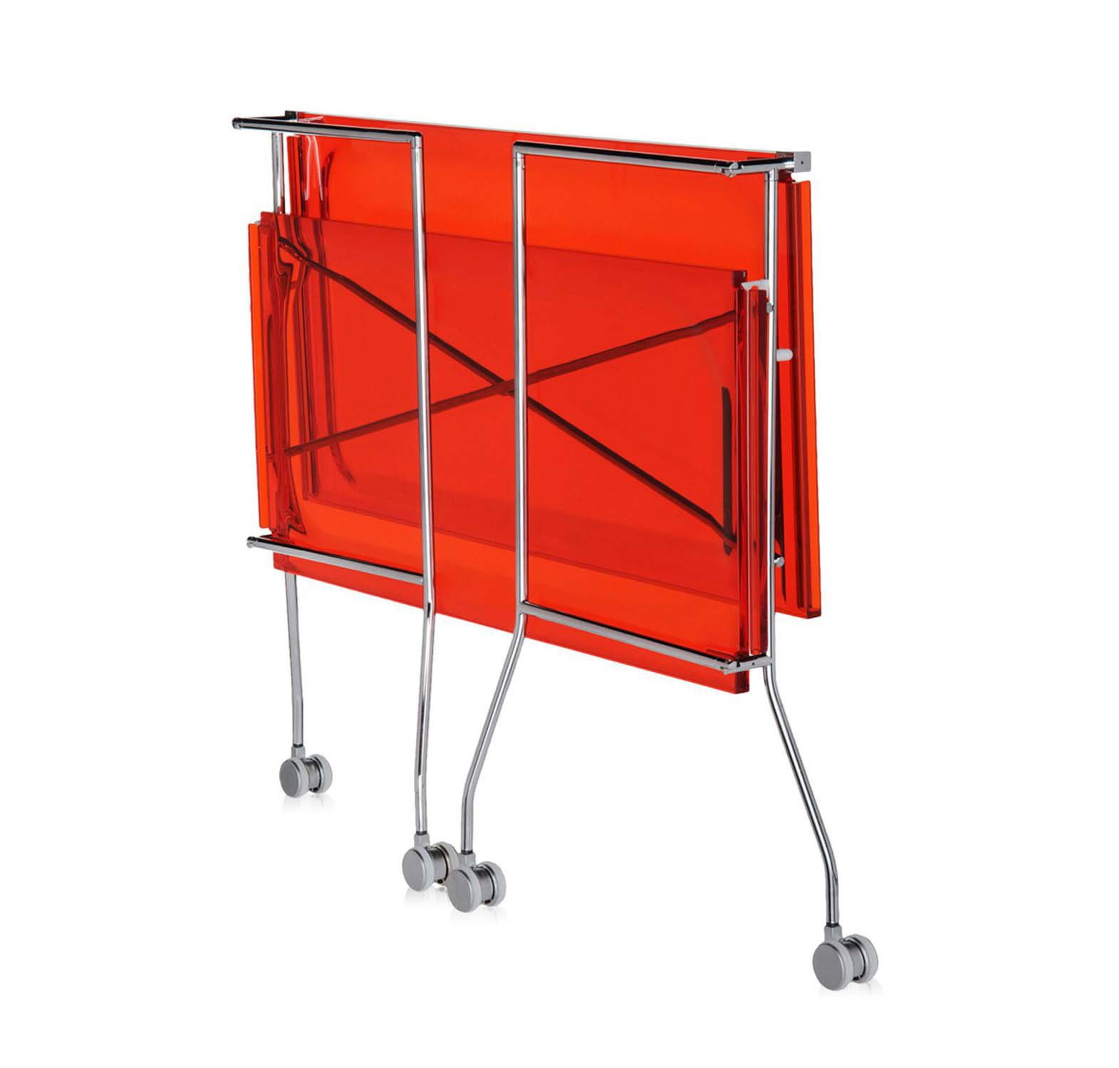 Serving table Flip from the Italian manufacturer Kartell. Table top made from polymethylmethacrylate PMMA, frame made of chrome plated steel. The model is made in a modern style, combines tradition and design. Colours in stock.