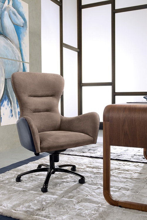 Gianpier chair from the Italian manufacturer Ulivi. Model swivel on your. The frame is made of wood. Seat and backrest filled with foam. Upholstery leather from the range of the manufacturer. Color palette - a combination of mocha and blue, but you may choose from a catalog. The curved lines of the back give the design elegance, convenience and comfort are the main characteristics of this product. A great choice for the office, office.
