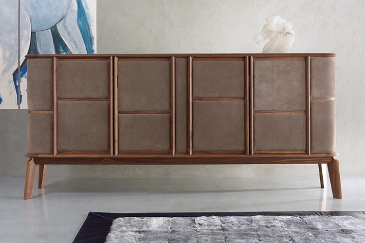 Dresser Matthias Office from the Italian manufacturer Ulivi. The frame is made of wood. The surface is decorated with leather trim. Model on a low lacquered wood legs. A chic choice for modern interiors. Product color: mocha, natural wood, you can choose the catalog of the manufacturer.