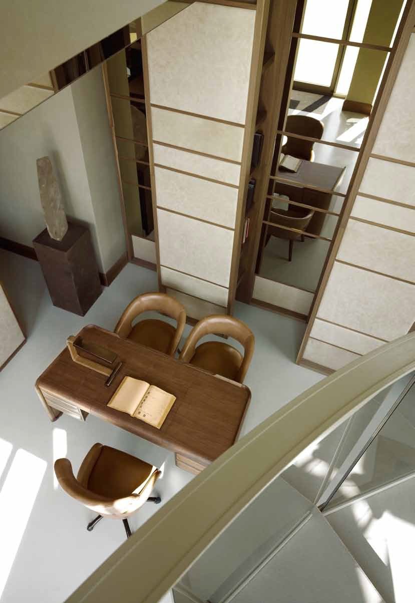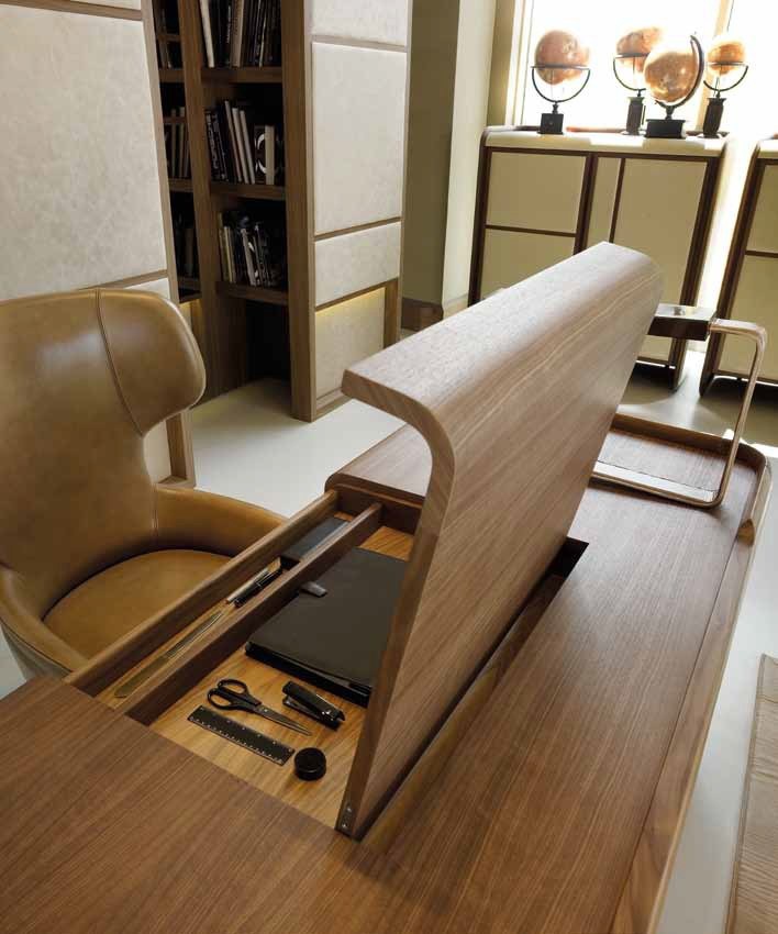 The Desk Everyday from the Italian manufacturer Ulivi. The frame is made of fir wood. Finishing the model is available with leather or walnut veneer. The color palette of the proposed model presents a warm beige hue combined with natural wood, you can choose from a catalog. The table looks massive, but the curved lines, becomes softer. The perfect choice for a personal office.