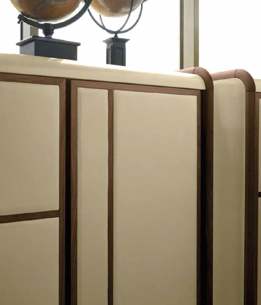 The Infinity sideboard from Italian manufacturer Ulivi. The frame is made of spruce. The finish of the model is a leather and walnut veneer. The color palette of the proposed model presents a warm shade of ivory combined with natural wood, you can choose from a catalog. Sideboard in a contemporary style - the perfect choice for a personal office, dining room or living room.