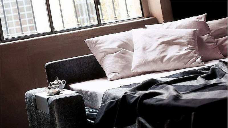 A pull-out sofa Sleep-well from the Italian manufacturer Mussi. Sofa bed on a frame of wood and plywood of poplar. The legs are made of chrome steel. The filler is polyurethane foam and nylon. The filler of back cushions and seat - Novolatex (wodospady polyurethane foam and latex), Dacron. Folding mechanism made of high strength steel. Base for mattress is made of orthopedic welded mesh with elastic straps of polypropylene. The mattress is filled with high strength polyurethane foam of different densities.