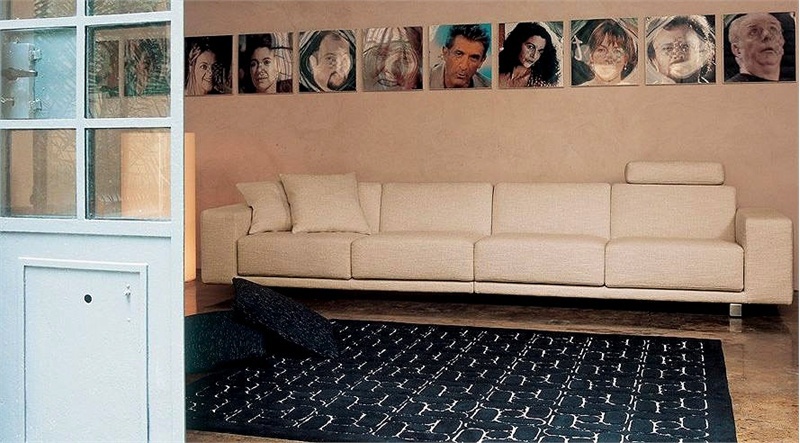 Sliding sofa from Italian manufacturer Mussi. Modular sofa on a frame of wood and plywood of poplar. Stainless steel legs and solid wood stained wenge or silver color (optional). The seat upholstery polyurethane foam and nylon. The filler of back cushions and seat consists of Novolatex (wodospady polyurethane foam and latex) and Waterlily different densities, Dacron. Upholstery this model removable. At the request of the client mechanism seat can be made of durable painted steel.