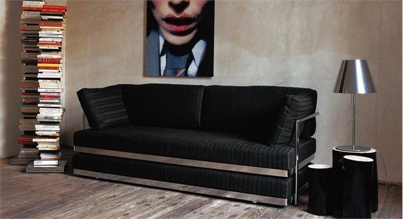 Sofa bed on a frame of chrome-plated steel Twin Mussi