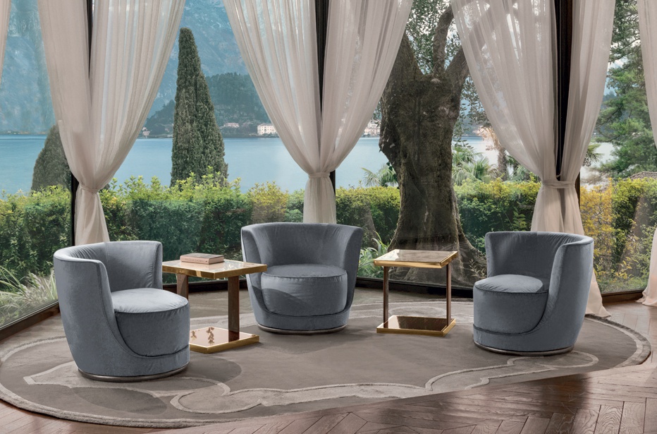 soft sterilized goose down. The base swivels 360°. At the base of the seat is a metal ring with the following finishes: glossy chrome, black glossy chrome, glossy
