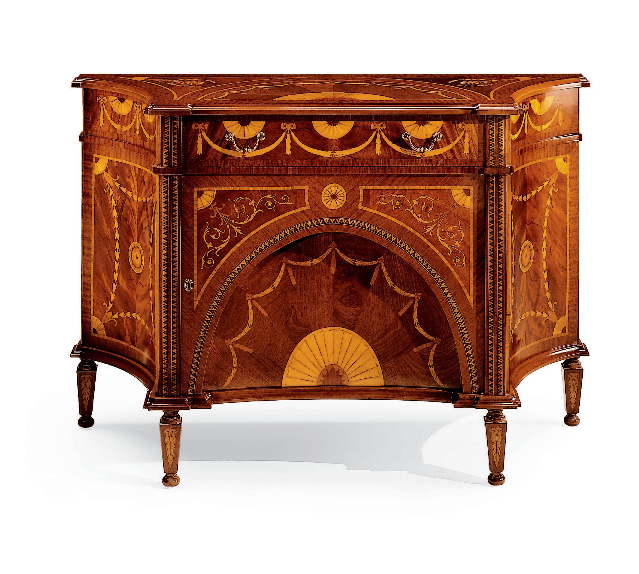 Stand from Italian manufacturer Armando Rho. The model is made from solid wood with elegant inlays of pear wood, Tulip tree and maple. Carved elements - hand made in the decoration of gilding. Colours in stock.