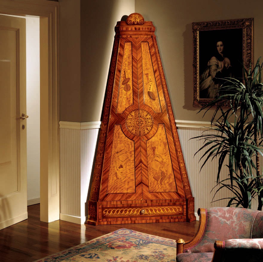 Corner Cabinet from the Italian producer Armando Rho. Model in classic style, made of solid wood with inlays of pear wood, walnut and maple. Carved elements - hand made in the decoration of gilding. Colours in stock.