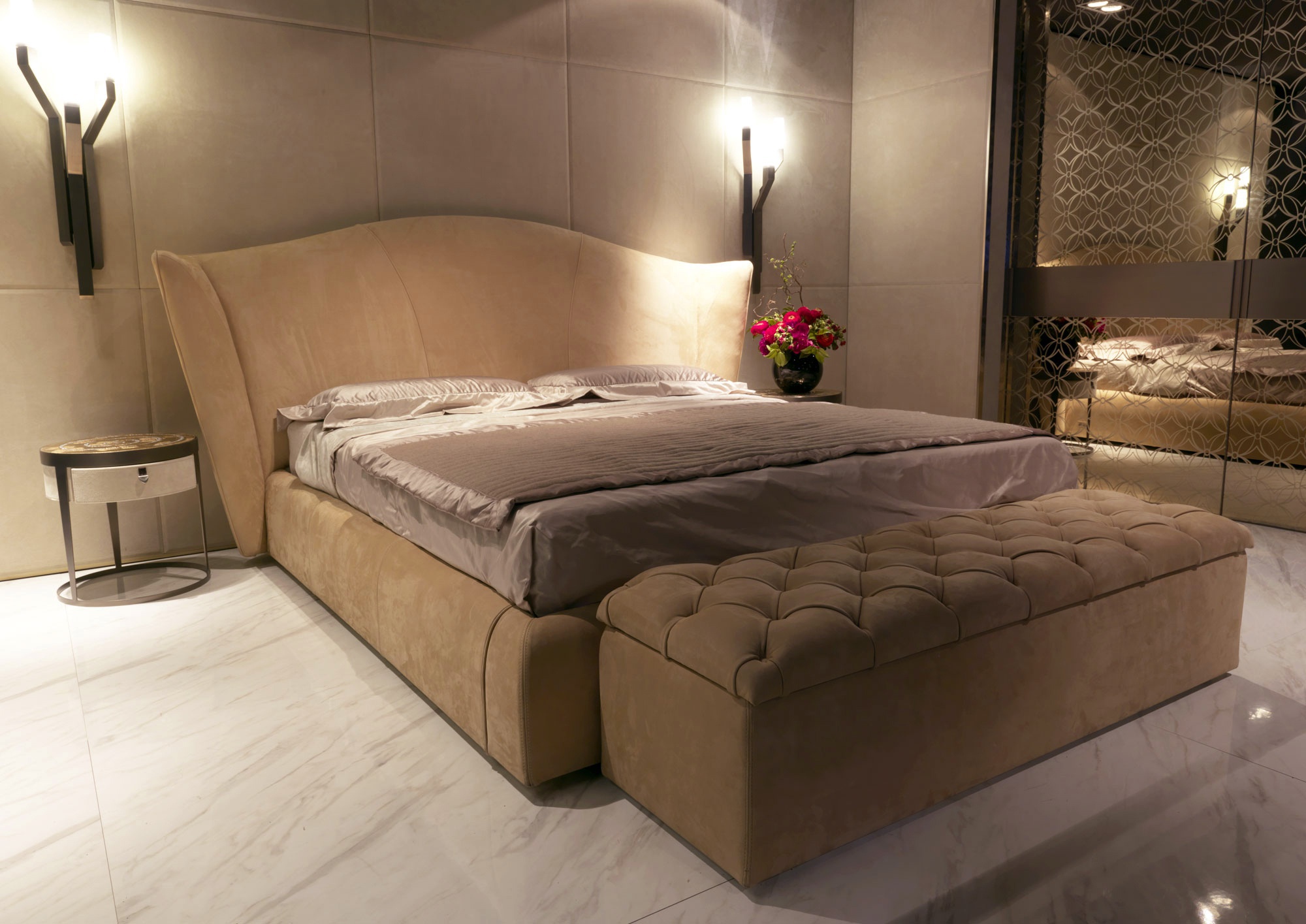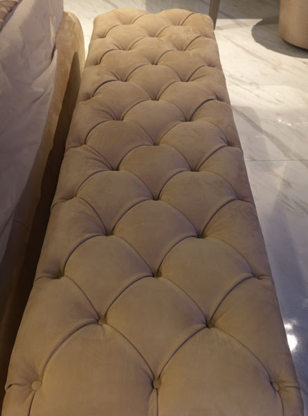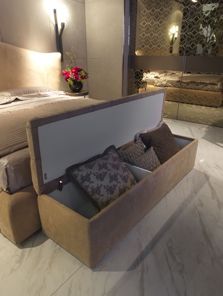 Bedside bench Sam from the Italian manufacturer Longhi. Foot-container, wooden frame covered with polyurethane foam. Inside the tree in white color. Non-removable upholstery in leather or fabric according to the pattern. Cover the decoration Capito or smooth. The model is made in modern style.