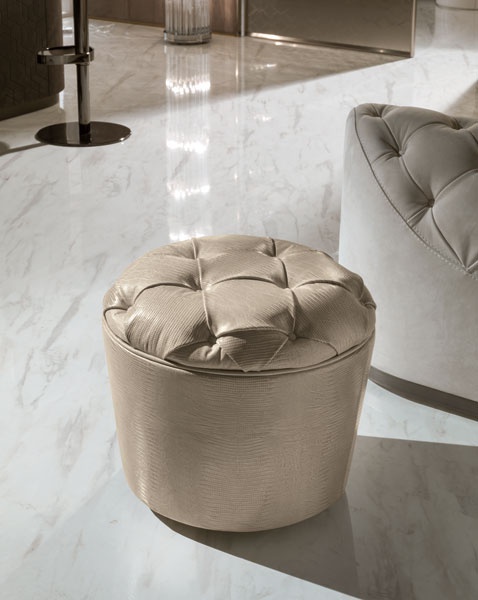 leather and fabric removable. The ring of metal in the glossy finish of bright gold and glossy chrome. The seat is available in three variants: smooth, finish Capito with a mono button or a crystal “Swarovki”, finishing with pleats, with a mono button or a crystal “Swarovki”.