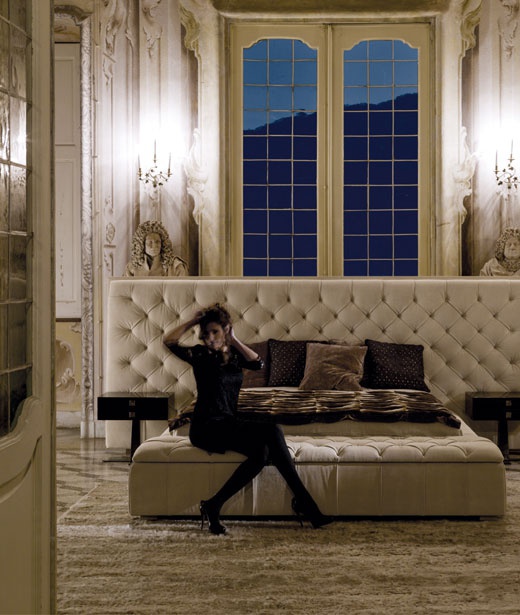 Double bed Napoleon from the Italian manufacturer Longhi. Frame made of multilayer beech covered with polyurethane foam of varying stiffness. Frame around the perimeter made by hand and combined with the sofa upholstery or covered with different materials according to the set of samples. The back is decorated with Capito with monochrome buttons or with crystals "Swarovski". Due to the special processing of upholstery leather and fabric not removable. The only possible upholstery back of the back velvet without firmware matching with the skin.