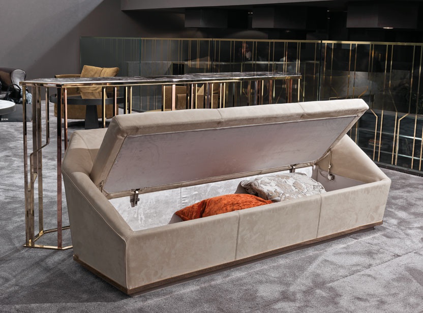Bench-container Yume from the Italian manufacturer Longhi. Wooden frame covered with polyurethane foam of varying stiffness.