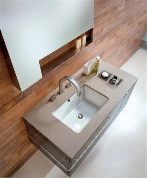 The bathroom set, Casual C7 from Italian manufacturer Pedini. The bathroom set. Frame and fronts are made of water-resistant material in veneer dark oak. Available finish options can be of oak veneer in white or silver shades. Countertops made of cementite ,porcelain, artificial stone Cristalan, of natural stone (Pietra grey, Basaltina, Grigio star) and steel (Satinato). Sink sanitaryware.