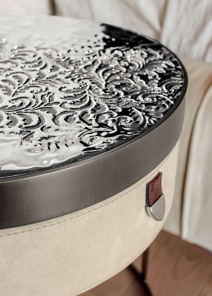 Amadeus bedside table from the Italian manufacturer Longhi. Laser cut by a table of polished steel.