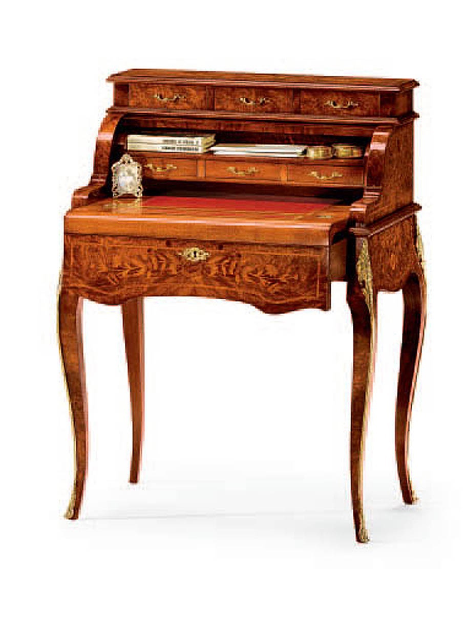 Bureau from Italian producer Armando Rho. Model of a light rosewood with elegant floral inlay of maple trees, Tulip and cherry tree in walnut. Impressive French style LXV. Colours in stock. Finish - antique gold. Carved items - handmade.