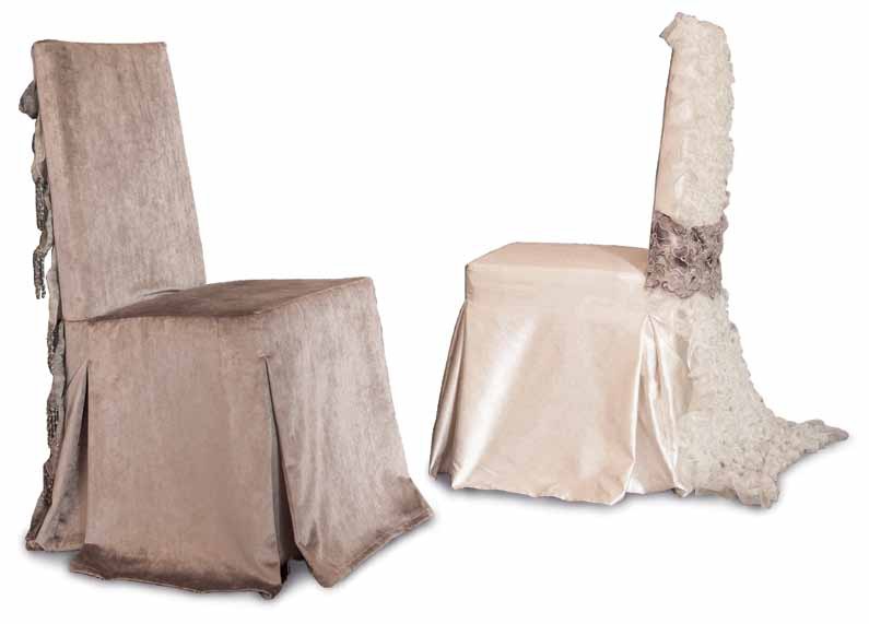 Chair fully upholstered with textiles Jacqueline Zanaboni Italian manufacturer. Upholstery made of high-quality textile with original sewn appliques in the form of Ruche. Color bright silvery tone. A modern solution for the interior dining room or public spaces.