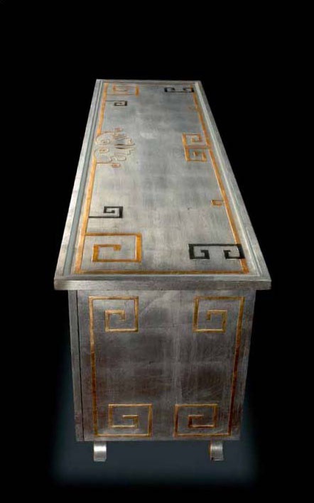 The Cabinet Art. V/4700 Italian manufacturer Zanaboni. Presents a model of the cabinets with wing doors on the short curly legs. The model is rectangular. Color in silver tone with Golden curly elements. A modern solution for living room or dressing room.