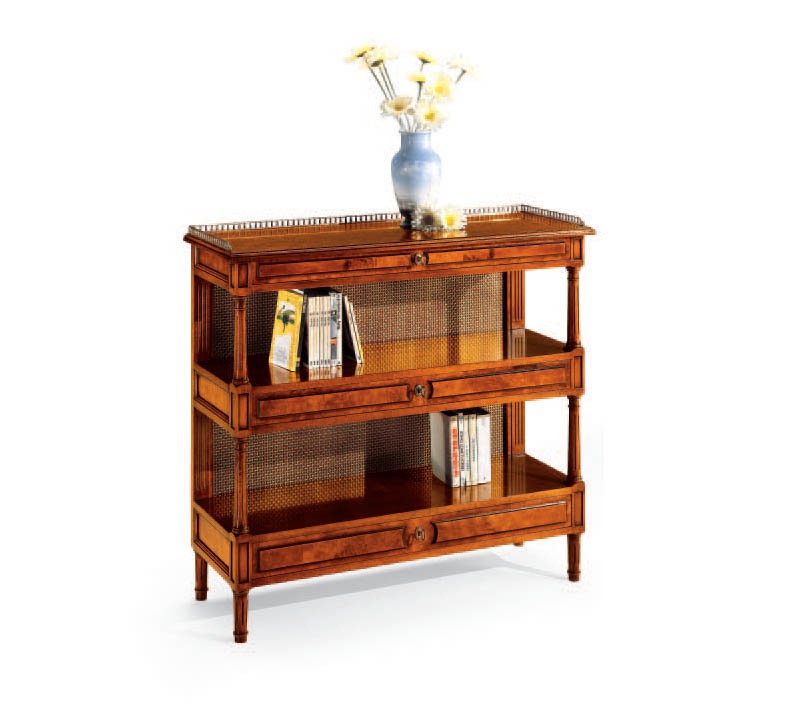 Bookcase with drawers from the Italian producer Armando Rho. The model is made from solid mahogany in a lacquer finish with decorative carvings (handmade). Colours in stock.