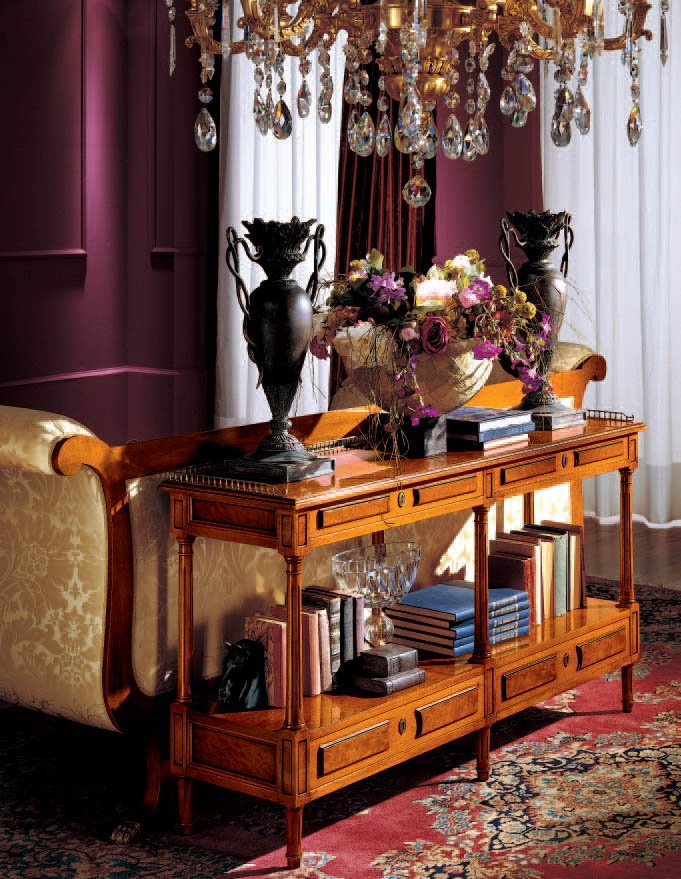 Bookcase with drawers from the Italian producer Armando Rho. The model is made from solid mahogany in a lacquer finish with decorative carvings (handmade). A great choice for the interior in classic style.