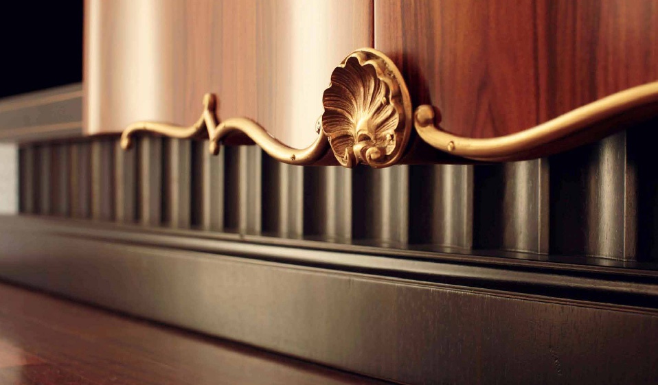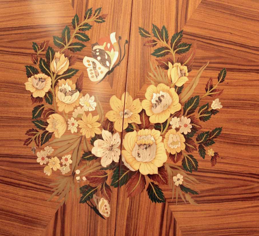 Cabinet for TV Art. F/4660 Italian manufacturer Zanaboni. Presents a model of a rectangular Cabinet with sliding doors. There is a place to install the TV. The doors of the original form, decorated with floral print. Color scheme in the combination of dark brown and light colors. A modern solution for living room.