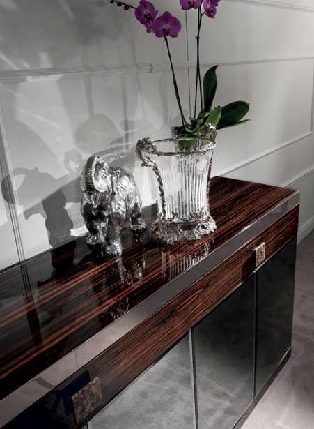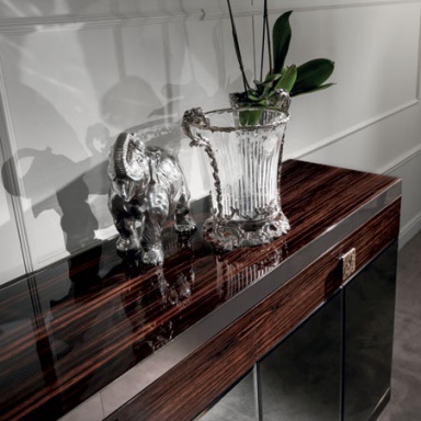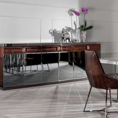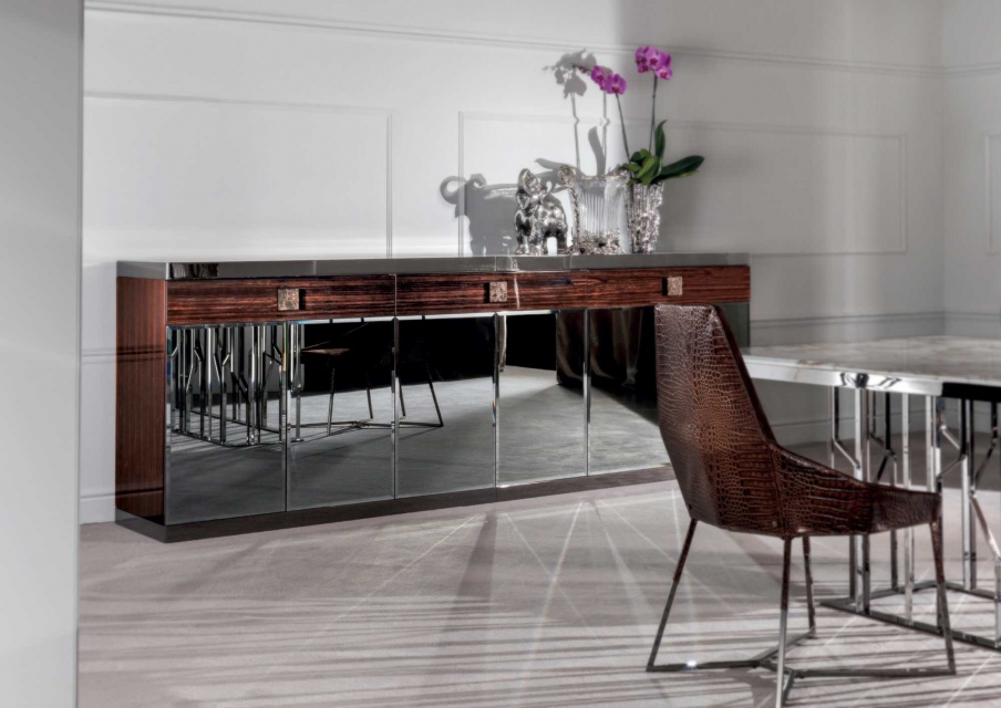 The Victoria sideboard from Italian manufacturer Longhi. Model with doors and drawers. There are several options combination finishes: entirely of wood; of wood and marble or mirrors; wood and leather. All options of finishes in stock.