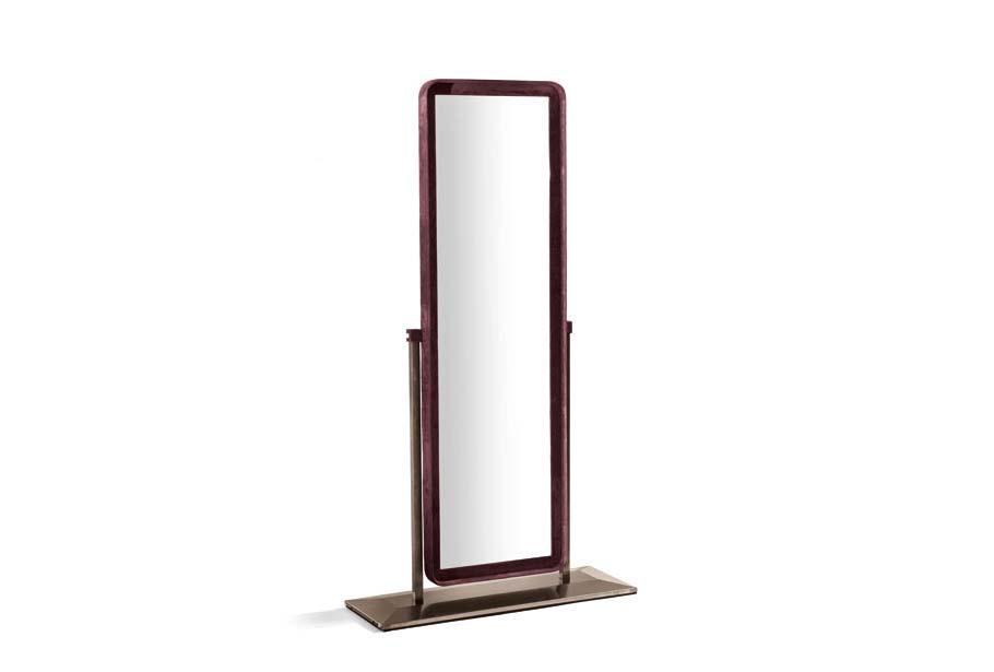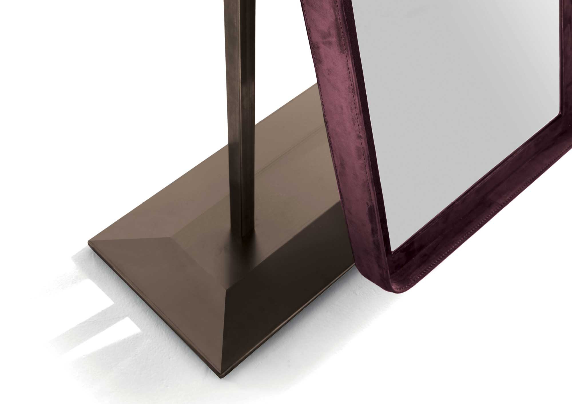 Outdoor mirror Isabelle from the Italian manufacturer Longhi. Swivel mirror covered in velvet or leather in colors from a catalog. Bevelled mirror 4 mm PTFE-polished